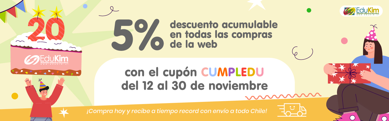 Usa el cupón CUMPLEDU al finalizar tu compra