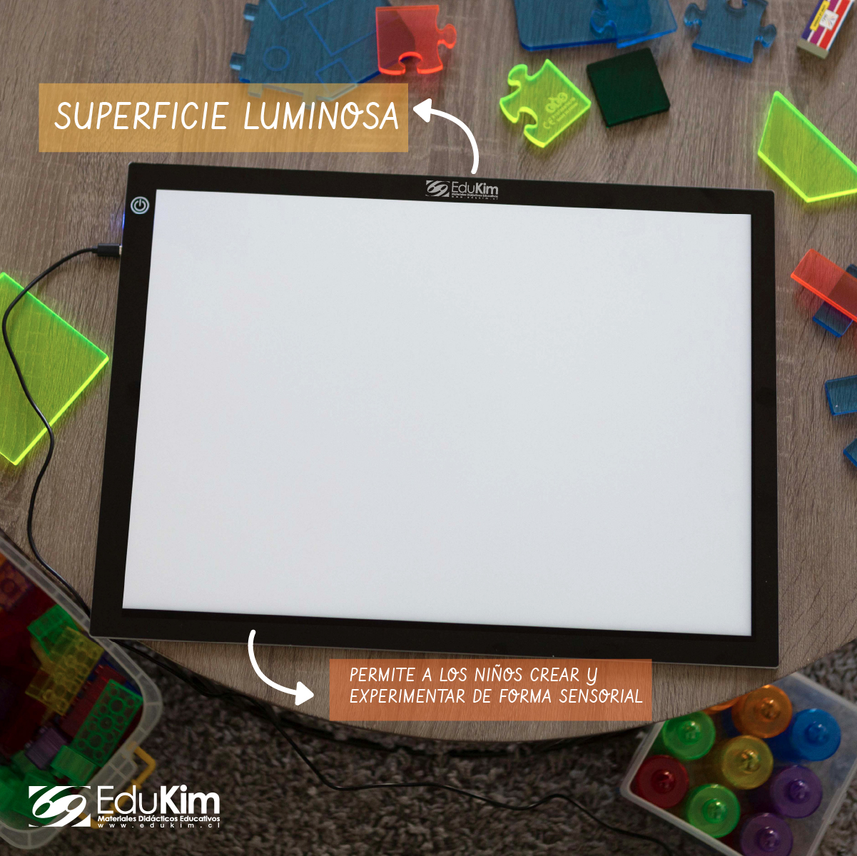 En edukim.cl podrás encontrar la mesa de luz de tamaño A3 (48 x 35 x 1 cm) portátil, lo que hace que su tamaño sea versátil. El grosor de la mesa de luz es mínimo, por lo que ocupa muy poco espacio si la queremos guardar.